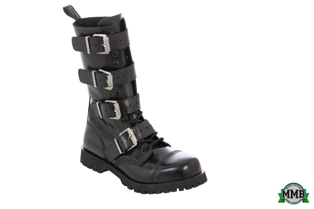 | Beschreibung | 14-Loch Stiefel mit Stahlkappe und Quernaht |
