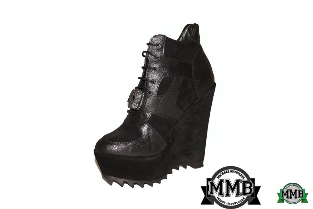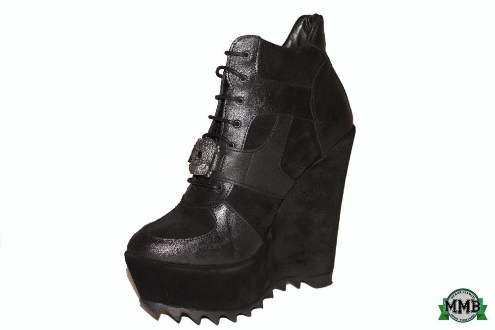 | Die Sohle ist mit schwarzem Wildleder überzogen. | |