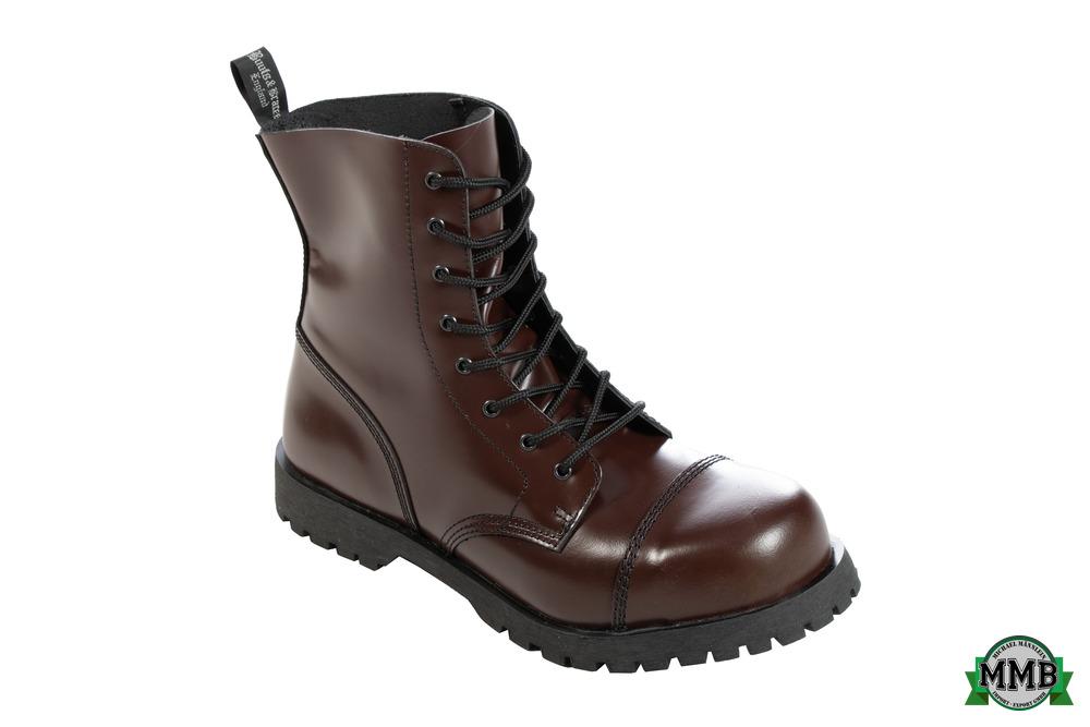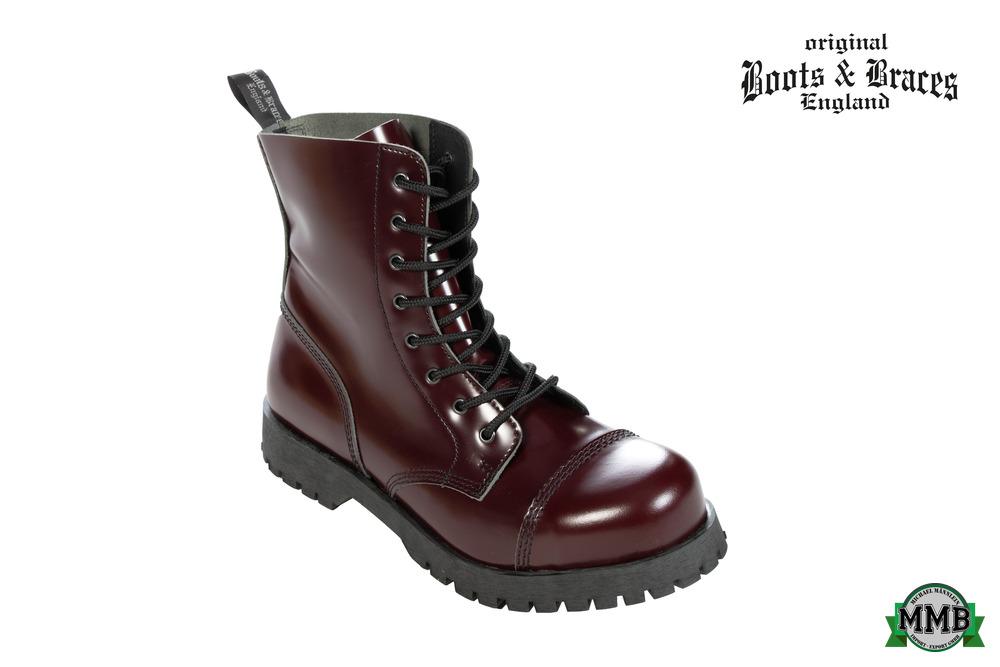 Beschreibung8-Loch Stiefel mit Stahlkappe und Quernaht