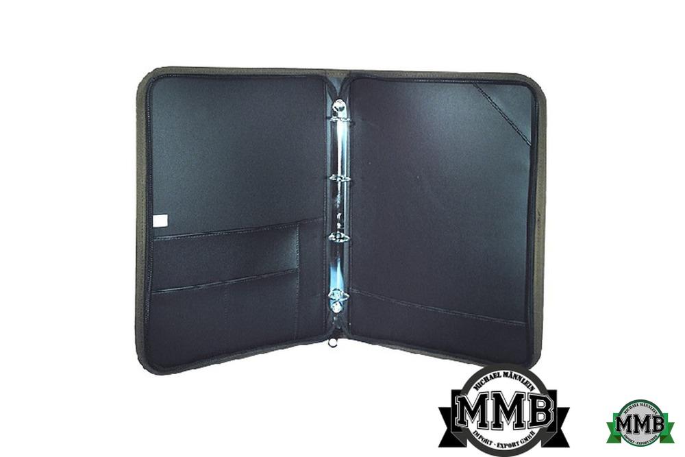 | Beschreibung | Note Book Größe DIN A4 mit Ringbuch-Funktion. Klett für Namensschild sowie 5 Einsteckfächer im Innenteil. Material: - Obermaterial: 100% Nylon - Innenmaterial: schwarzes Kunstleder |