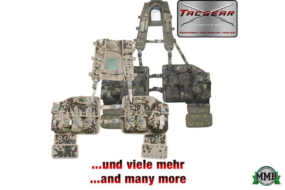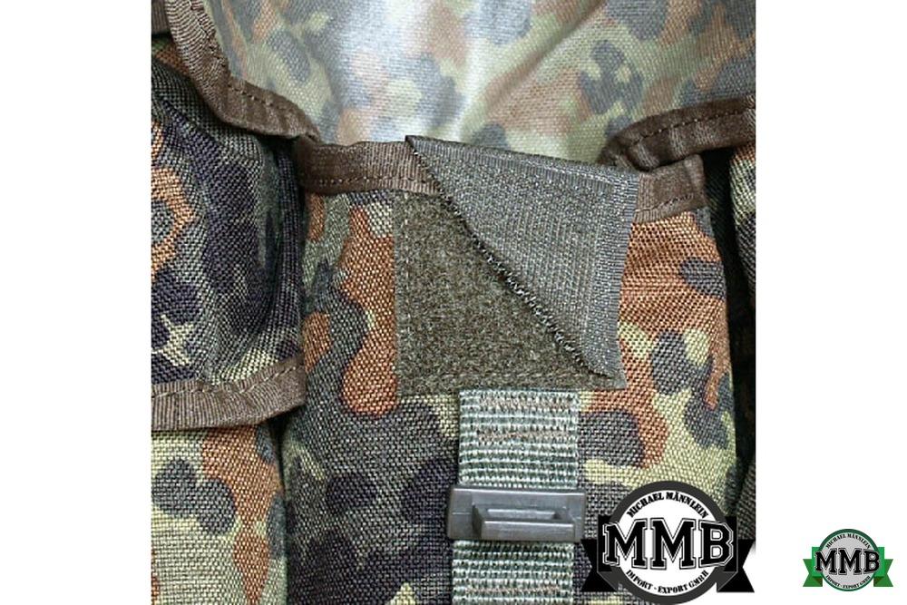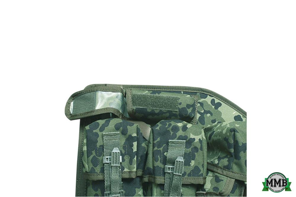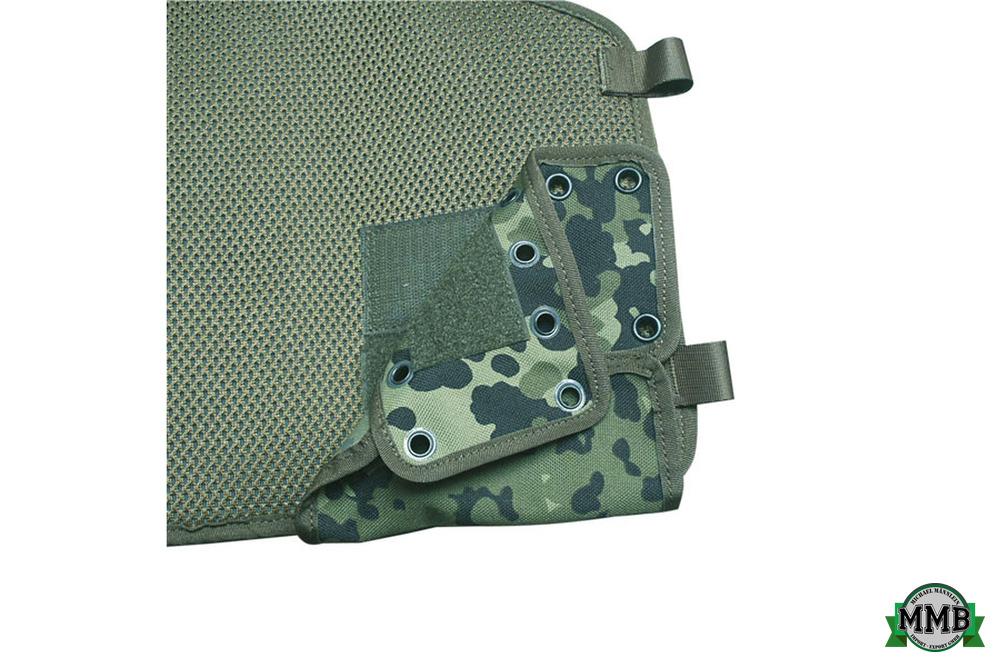 - 2 einklappbare, mit Klettverschluss gesicherte Aufnahmeplatte für Maskentachen, ect (in flecktarn mit Gurtbänder) |