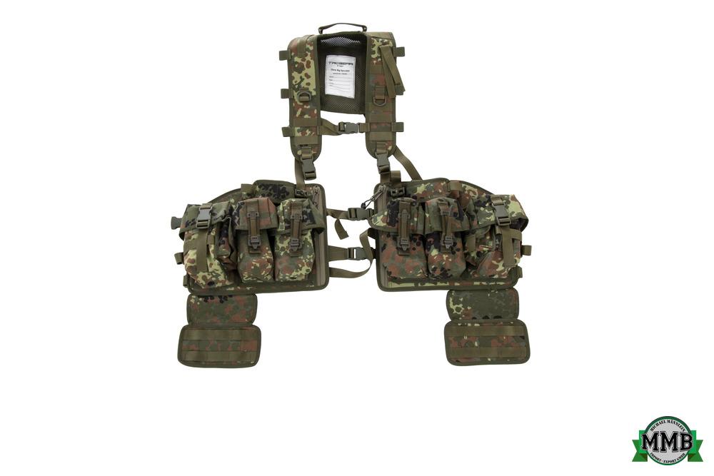 Eine Weiterentwicklung der Standardversion für den professionellen Einsatz. Es bietet alle Vorteile eines konventionellen Chest Rigs plus mehr Stauraum für Kampfmittel/ persönliche Ausrüstung, höheren Tragekomfort und mehr Aufnahmemöglichkeiten | |